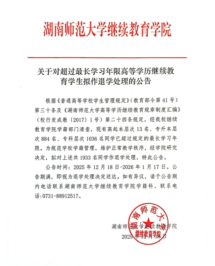 关于对超过最长学习年限高等学历英国威廉希尔公司学生拟作退学处理的公告